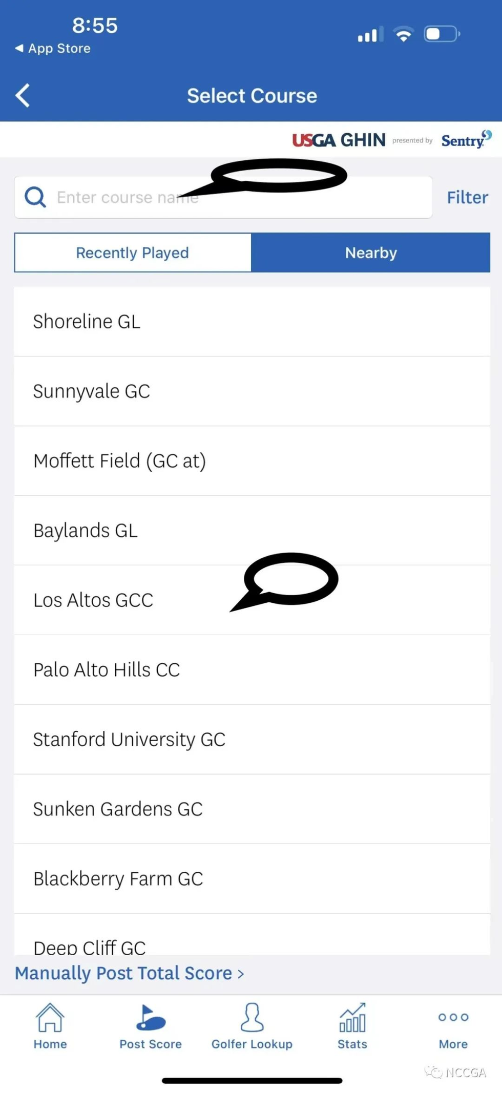 从10月1日开始,myNCGA app 已经下线不能使用了,请大家转用USGA GHIN app。下载app 后,用自己的GHIN号及last name login。第一次使用时,在profile 中输入姓名,email 即可。